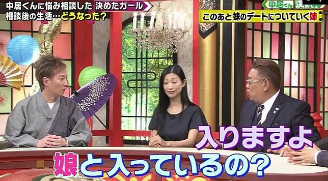 中居睇完片段就縐晒眉,話感覺好唔舒服:「就算情侶都未必咁一齊沖涼。」向在場的諧星伊達幹生問:「你有冇同老婆一齊沖涼?」伊達幹生答:「依家冇啦!但有同7歲女兒一齊洗白白!」中居與在場嘉賓即嘩然,即喝令:「快啲盡早停止呢件事!」否則就好似北見戒唔甩同家人共浴的習慣。
